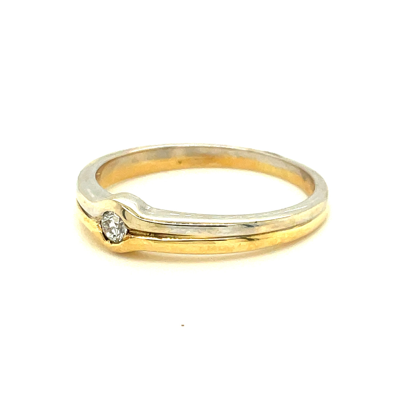- This ring has a rub-over setting with a brilliant-cut diamond.