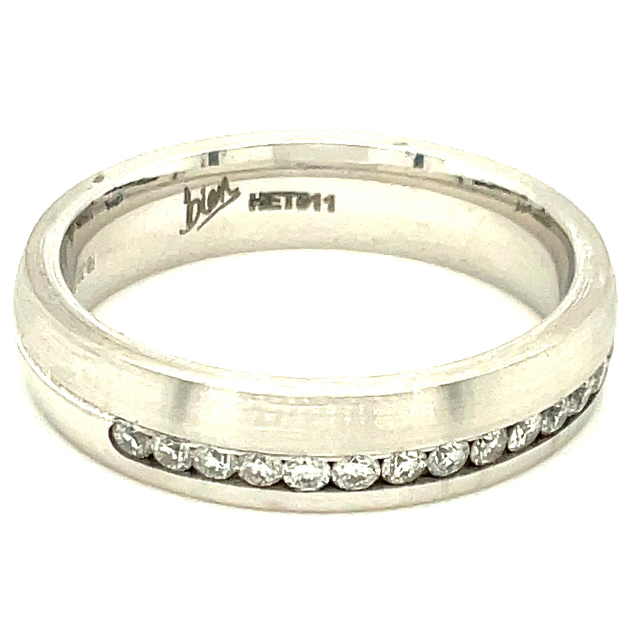 - This ring is set with brilliant-cut diamonds in a channel setting.