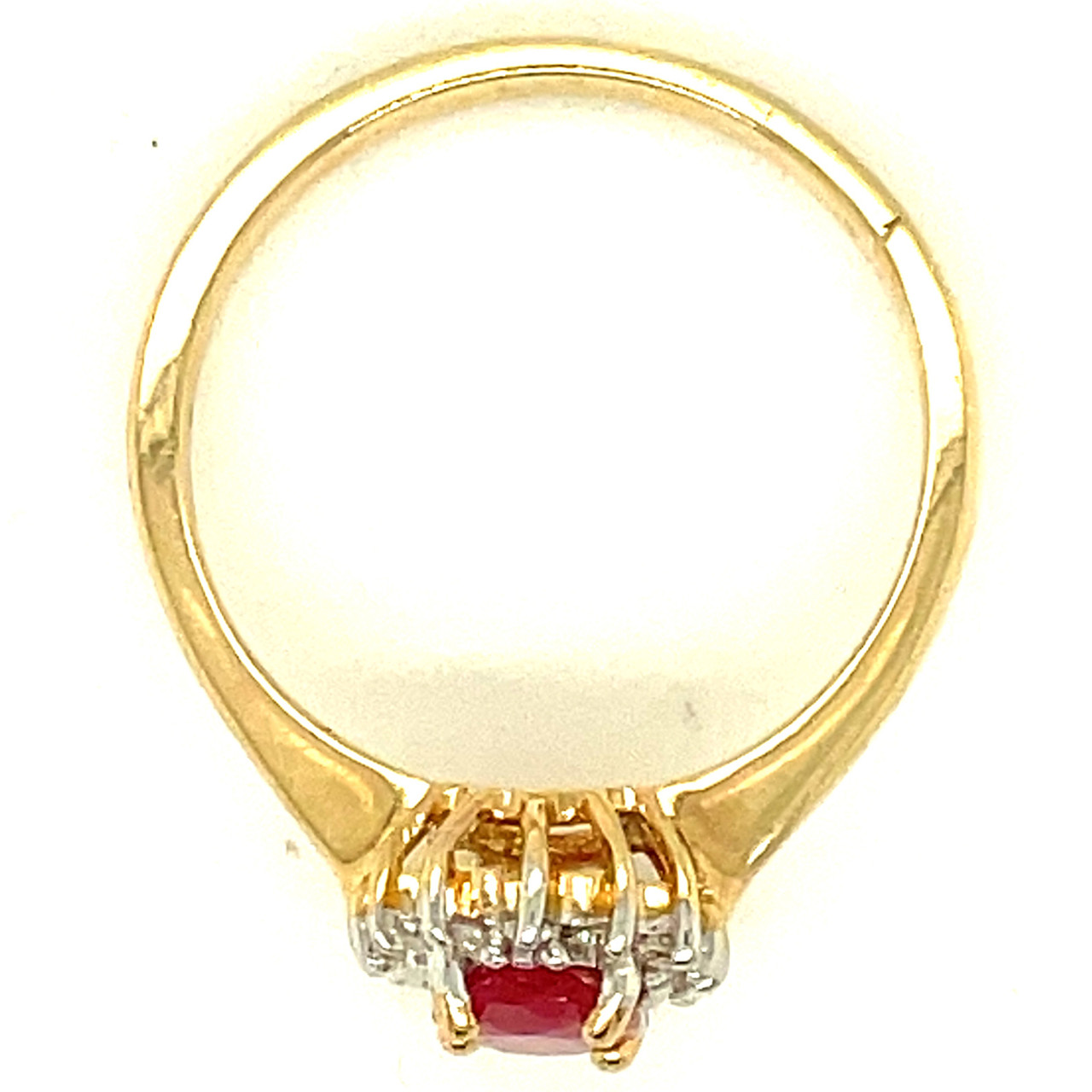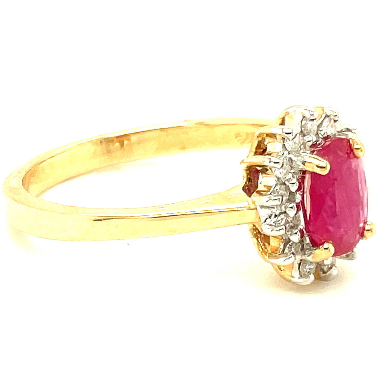 - The diamonds around it are brilliant-cut, while the centre diamond is an oval-cut ruby held in place by four claws.