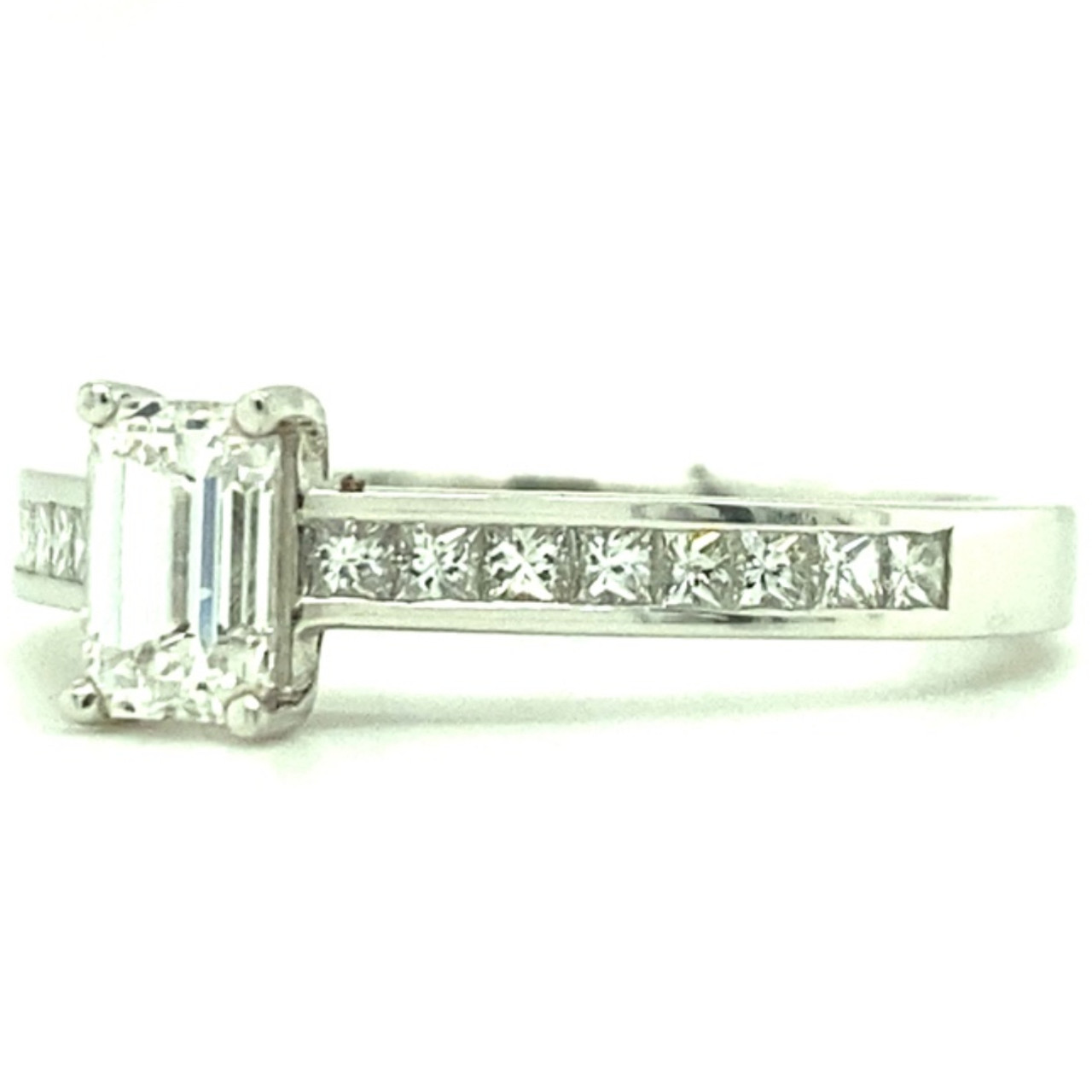 - This claw-set emerald-cut colour D centre Diamond ring is an attractive addition to any style-conscious women's collection.