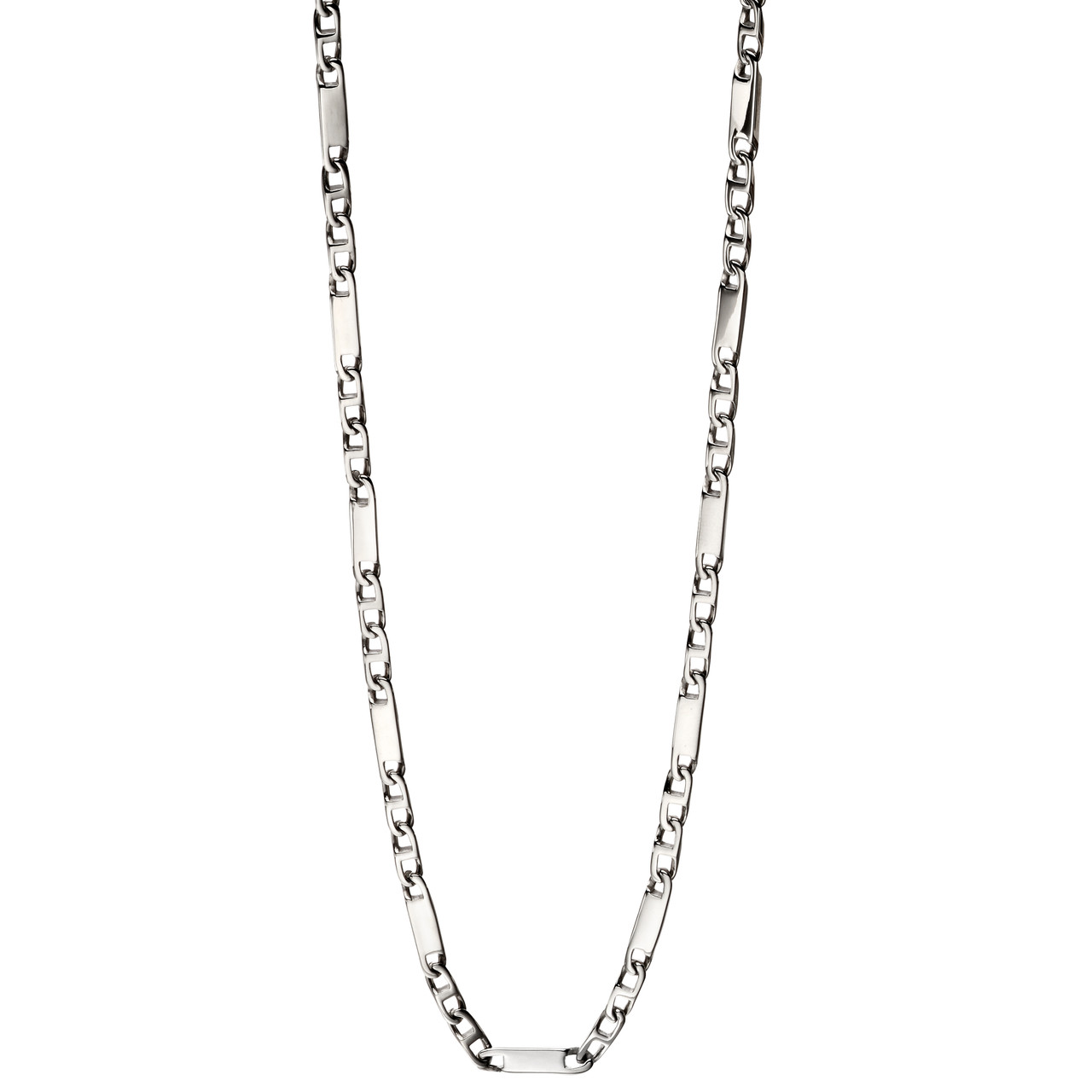 - This necklace features a bar chain with a polished finish.