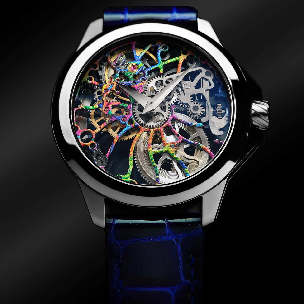 - A multicoloured skeleton dial ArtyA Men's watch.
