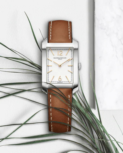 - Stainless-steel polished rectangular case watch.