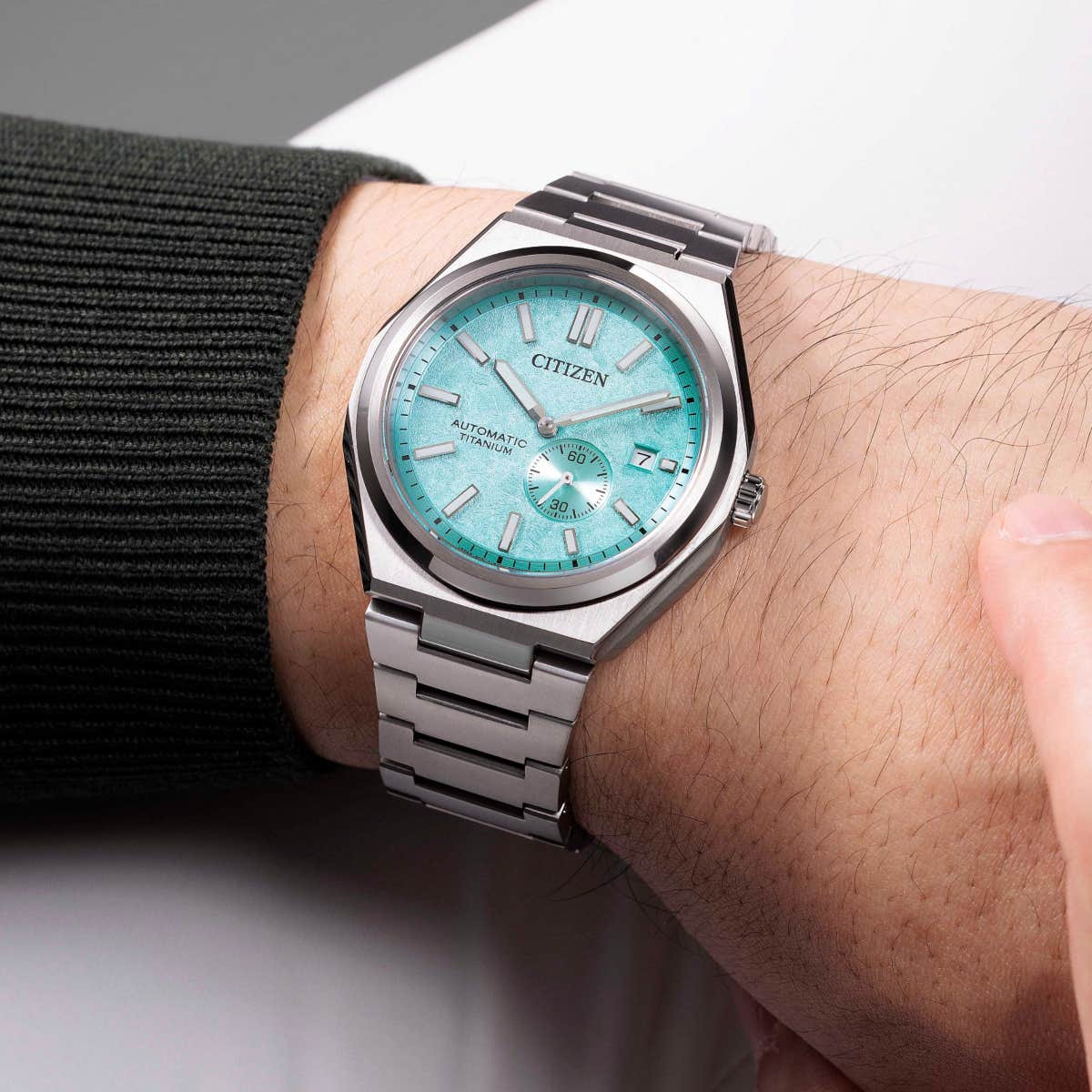 - A textured blue dial with an outer outer minute ring in black Citizen Men's watch.