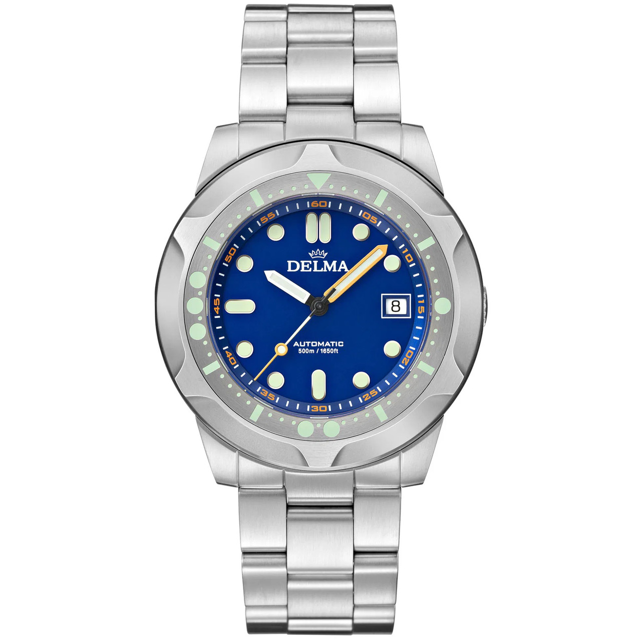- A blue HMSD dial DELMA men's watch.