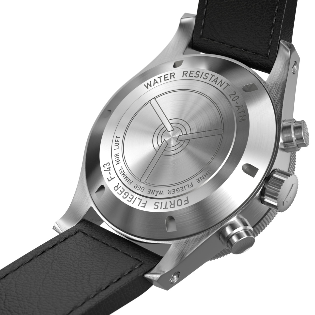 - Black Aviator Strap (Leather) finished with a pin buckle clasp to ensure security on the wrist.
