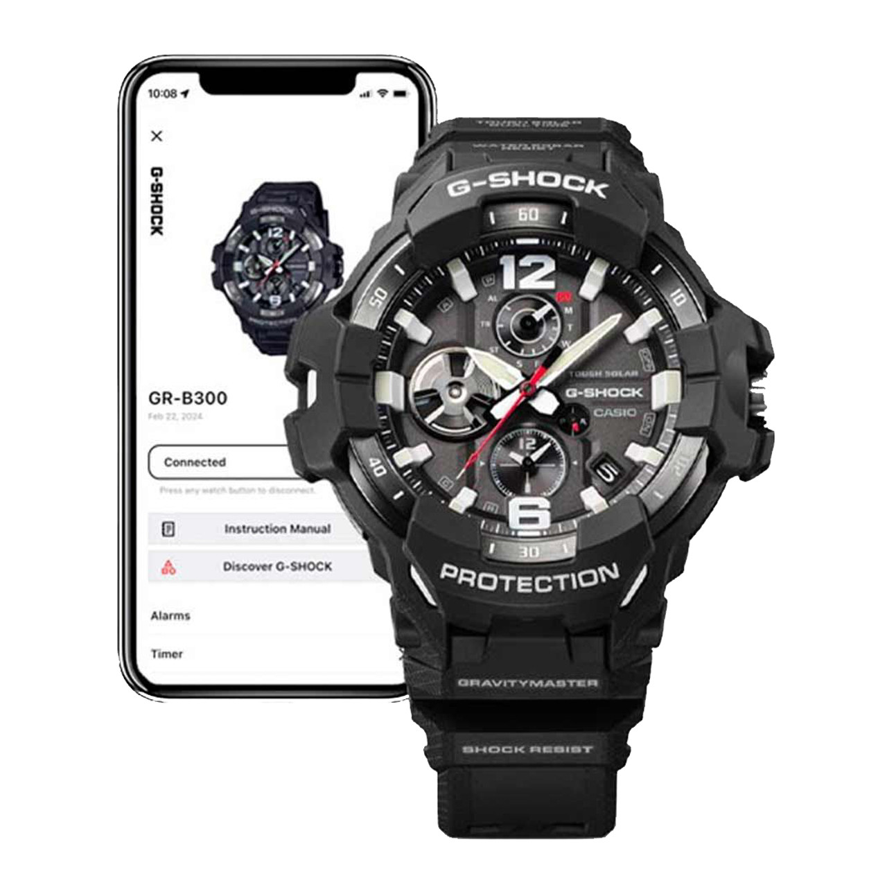 - The B300 provides all the features you expect from a Master Of G timepiece including dual-time simultaneous two time zone display, solar powered by any light source, alarms and stopwatch.