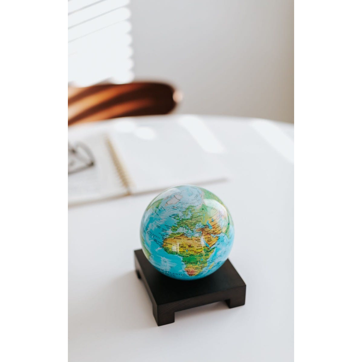 - Each globe combines vibrant artwork with our patented technology, creating a flawless rotation without batteries or messy cords.