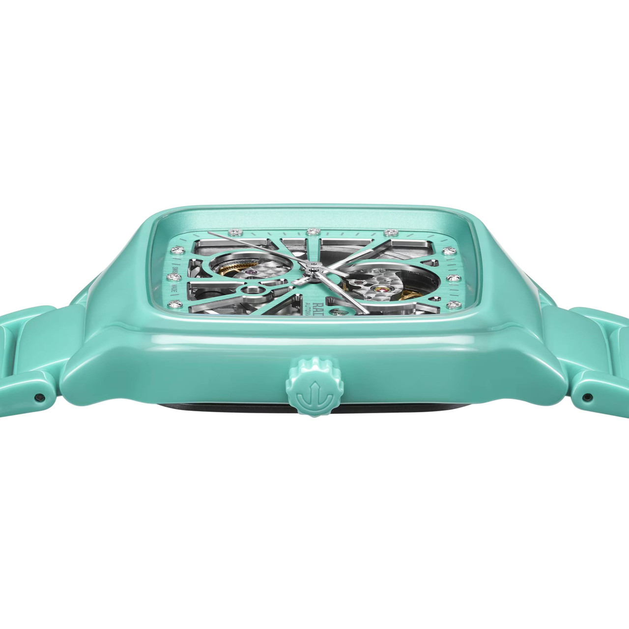 - The turquoise dial is accentuated by silver-coloured bevels Rado Unisex watch.