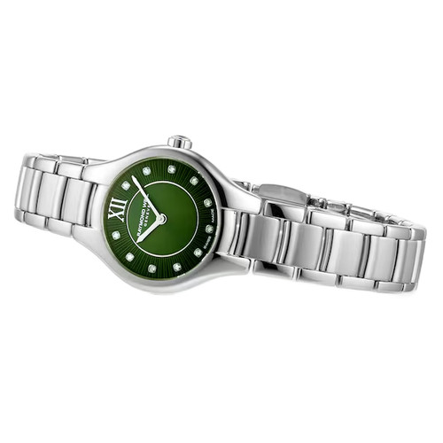- A green mother of pearl striking design dial Raymond Weil ladies' watch.