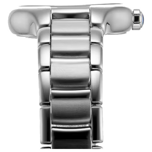 - The easy-to-read dial features two hands and indexes decorated with 11 diamond dots.
