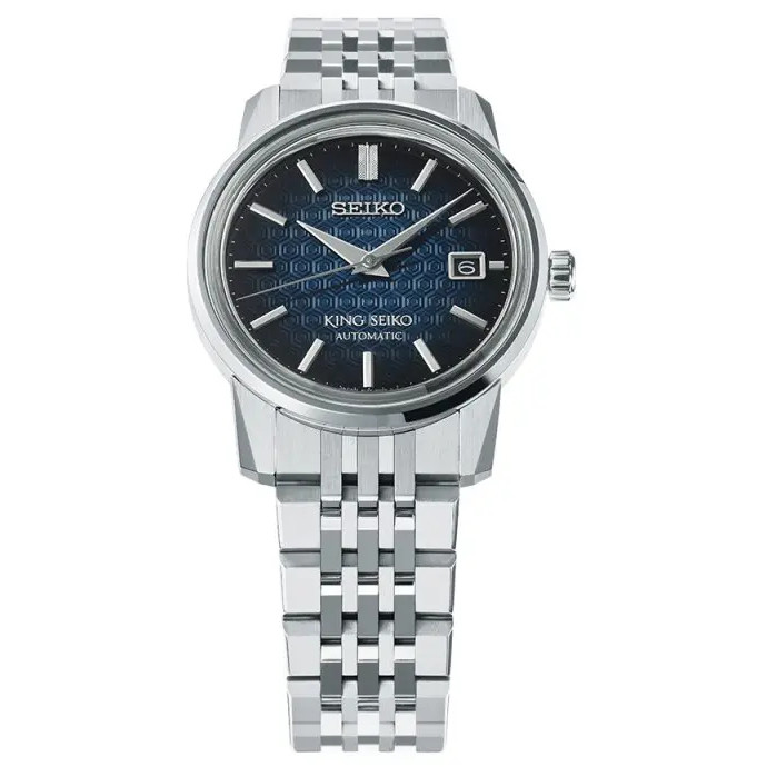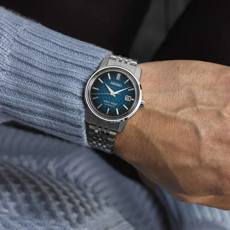 - The dial of the King Seiko 'Kameido Blue' features a turtle shell pattern in a deep blue gradation.