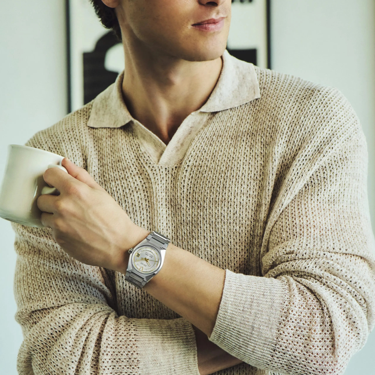 - The mechanism used is an in-house-built 8L45 automatic with manual winding movement. This calibre movement is complete with 35 jewels and a 72-hour power reserve.