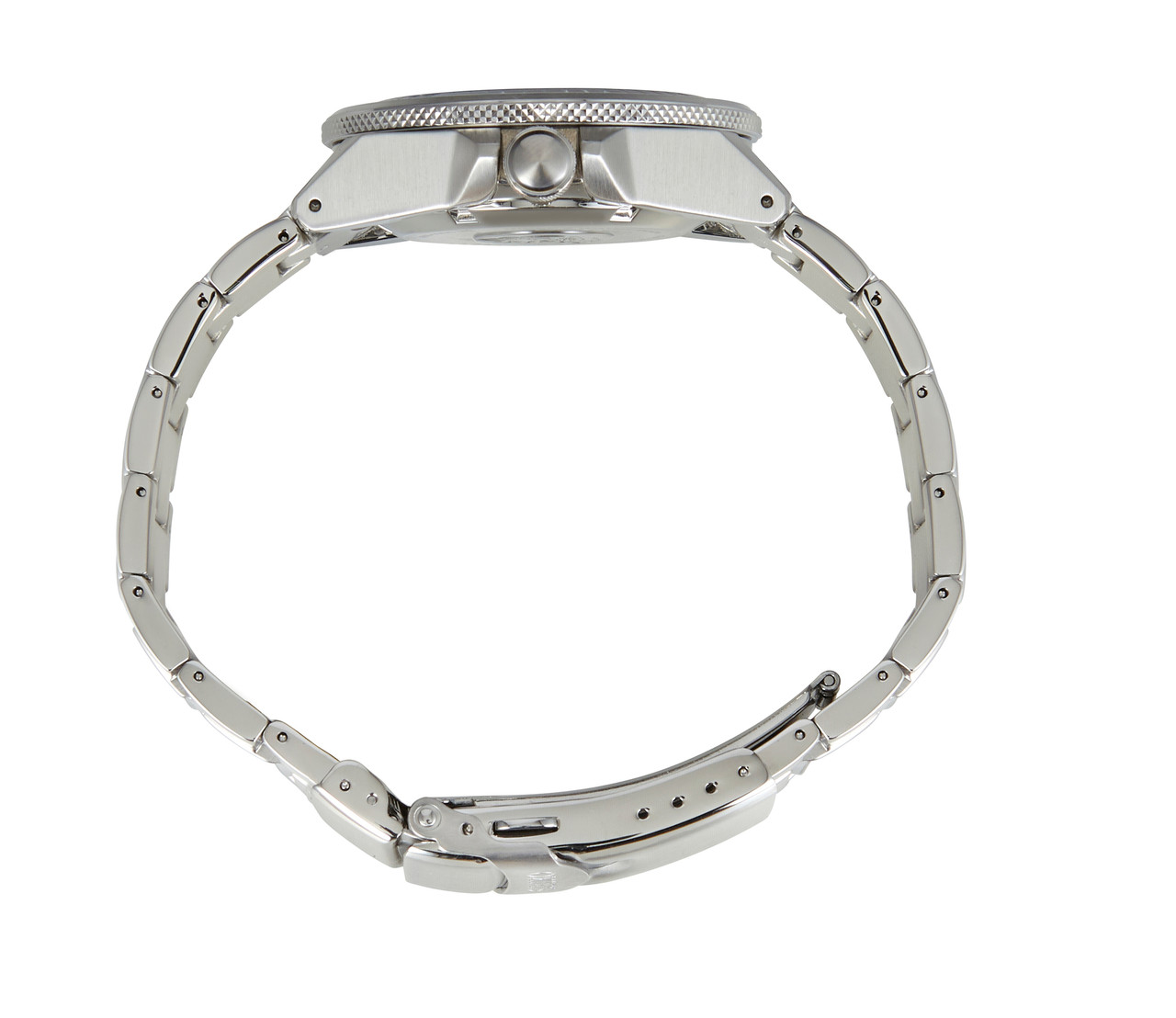 - Silver stainless-steel bracelet finished with a three-fold clasp to ensure security on the wrist.