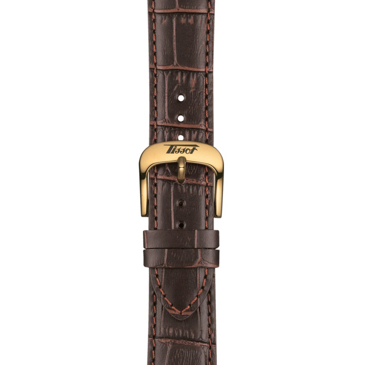 - Brown leather strap detailed with brown stitching and finished with a buckle clasp to ensure security on the wrist.
