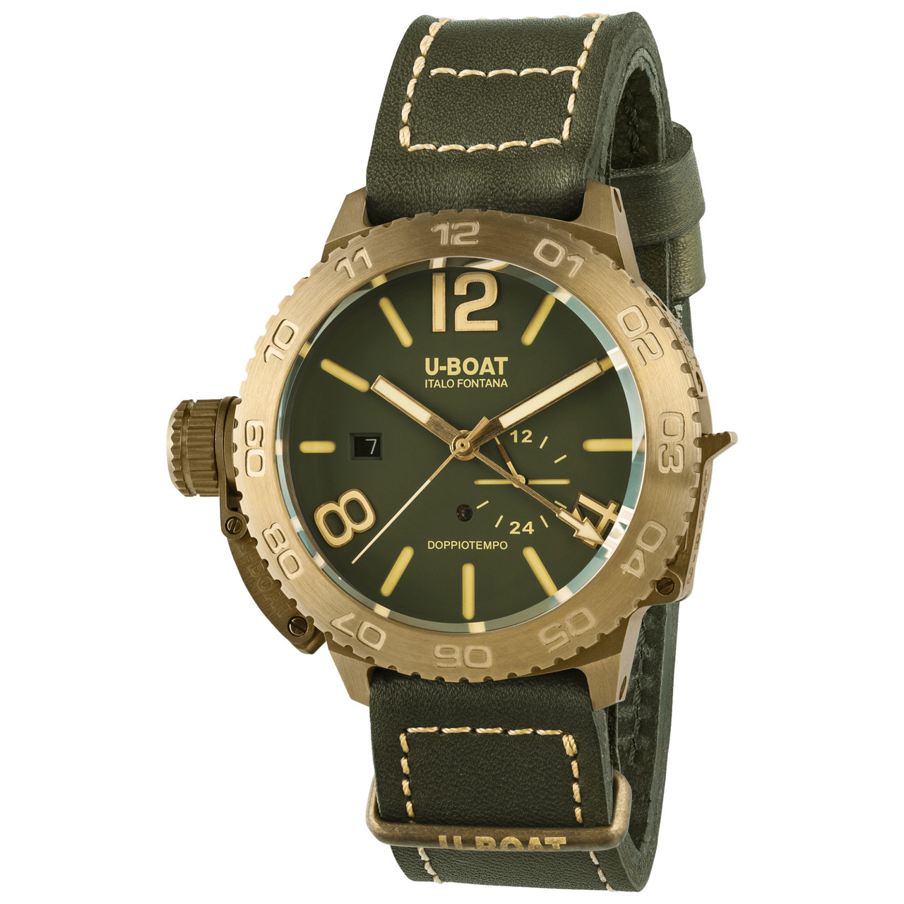 - A green superimposed dial with visible ruby U-Boat Men's watch.