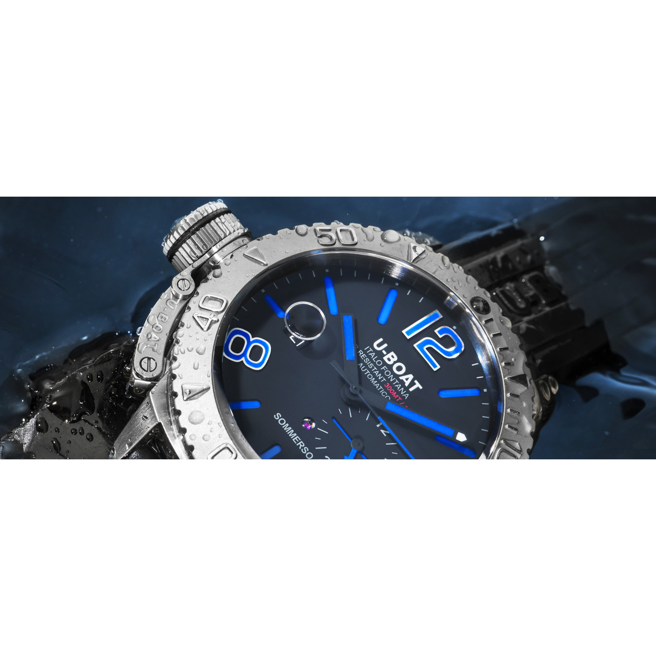 - Three superimposed dials, the upper one in black and blue 24h indicator hand subdial U-Boat Men's watch.