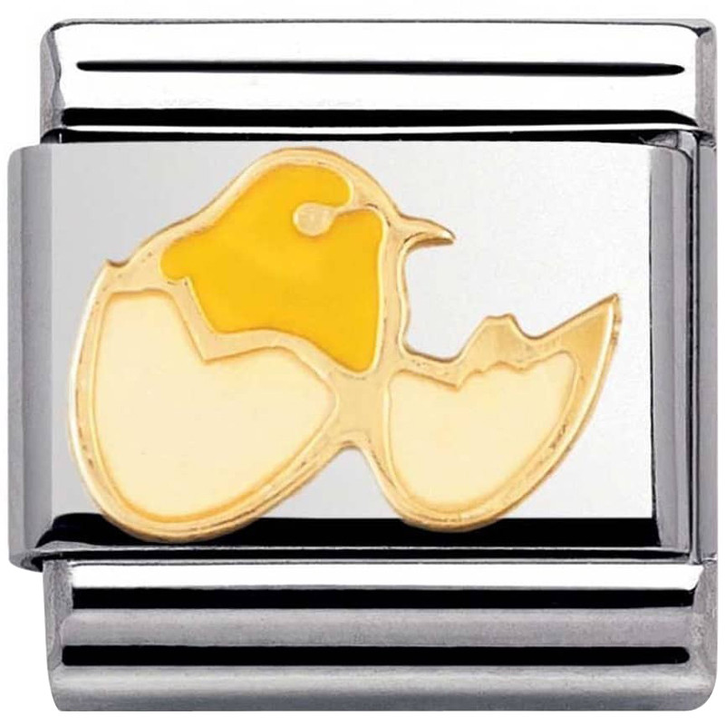 - A chick charm crafted from 18K gold with yellow and cream enamel detailing on stainless-steel base.