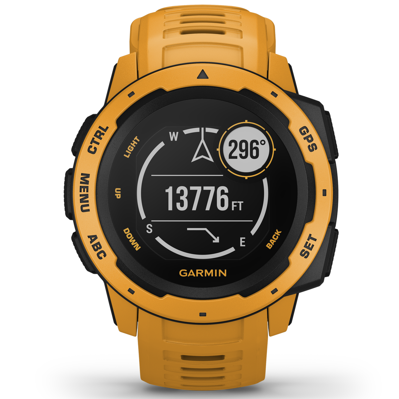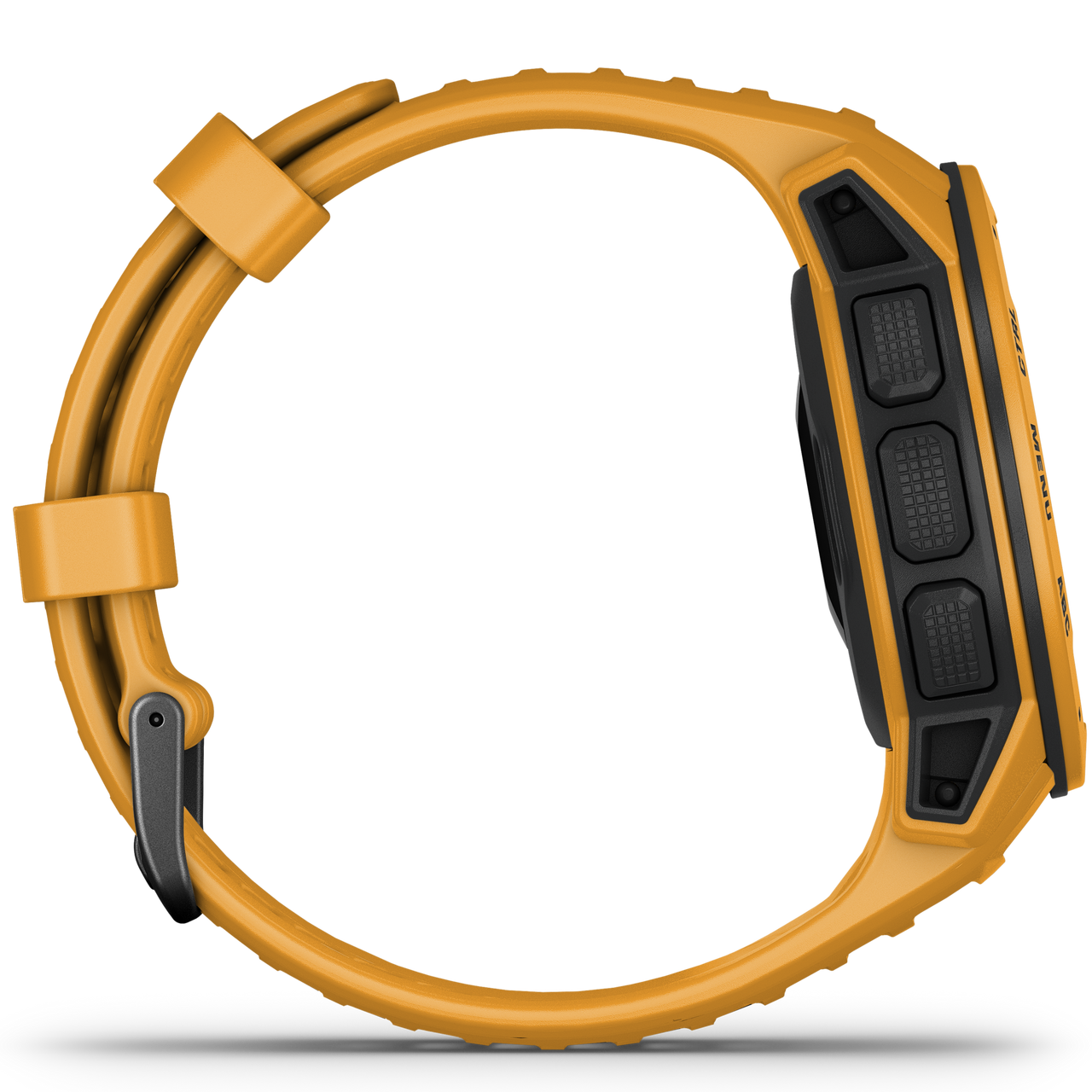 When you can rely on Instinct, the world can rely on you. This rugged, reliable outdoor GPS watch is built to the U.S. military standard 810G for thermal, shock and water resistance (rated to 100 metres). The fibre-reinforced polymer case adds strength and durability and the chemically-strengthened, scratch-resistant display is high-contrast enough to read in bright sunlight, so you can take it with you into the extremes you face every day. Plus, the fully vented silicone bands include two independent, removable keeper loops to ensure a secure fit and to keep you from getting caught on things.